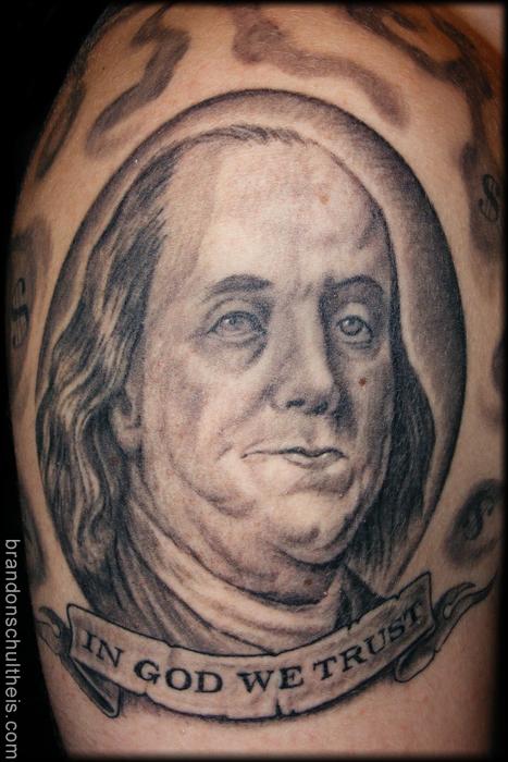 Just under that there is also a dollar inked. May 14 2020 - Explore Robbie Sparkss board Gangstered Benjamin Franklins on Pinterest. This is not the first tattoo that showcases.